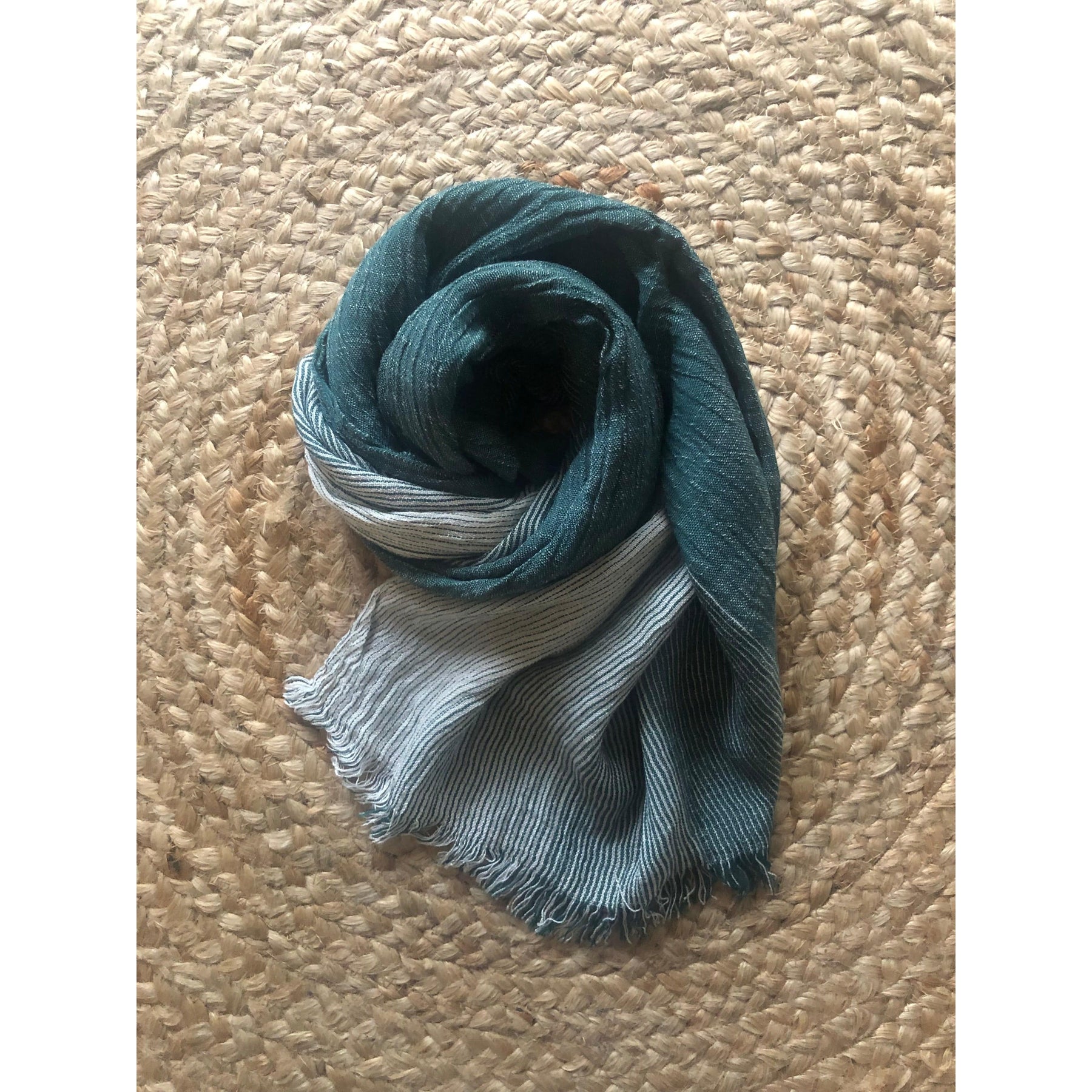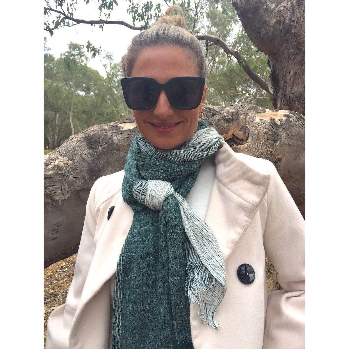 Scarves Australia Fashion Scarves Green Cotton Linen Panelled Scarf Unisex
